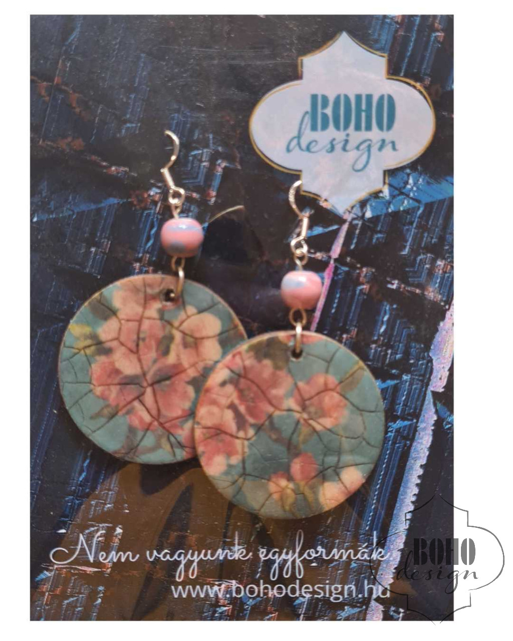 Türkiz - cseresznyevirág - BOHOdesign aszimmetrikus fülbevaló