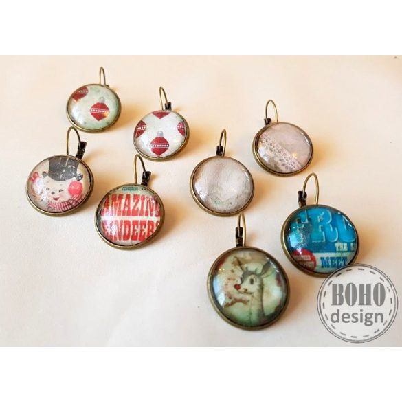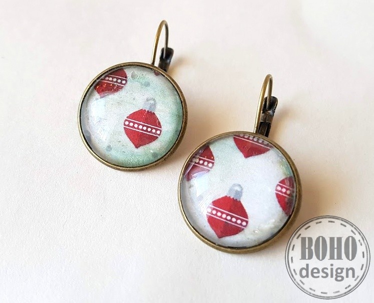Vintage hangulatú karácsonyi - piros üveglencsés fülbevaló