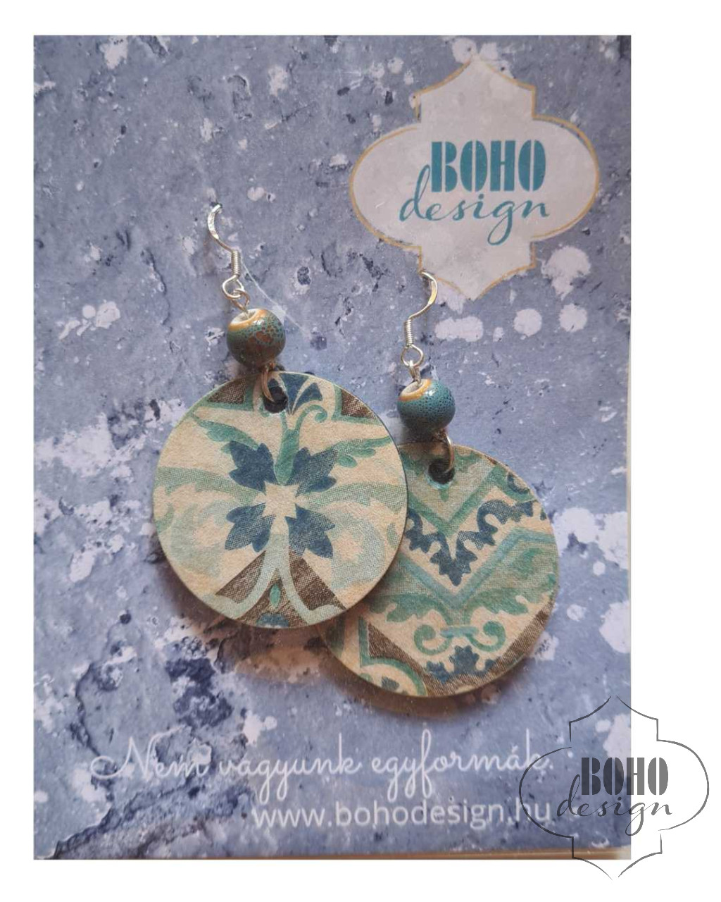 Azulejo csempemintás (kék-türkiz) - BOHOdesign aszimmetrikus fülbevaló - idézetes csomagolásban