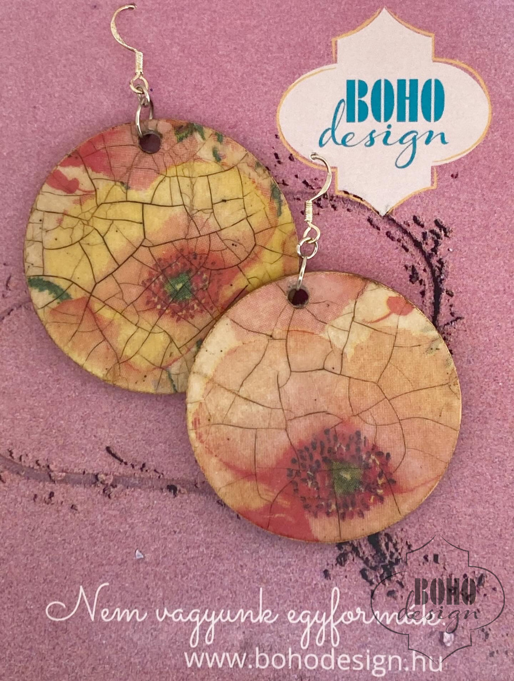 Pipacs - BOHOdesign aszimmetrikus fülbevaló - idézetes csomagolásban
