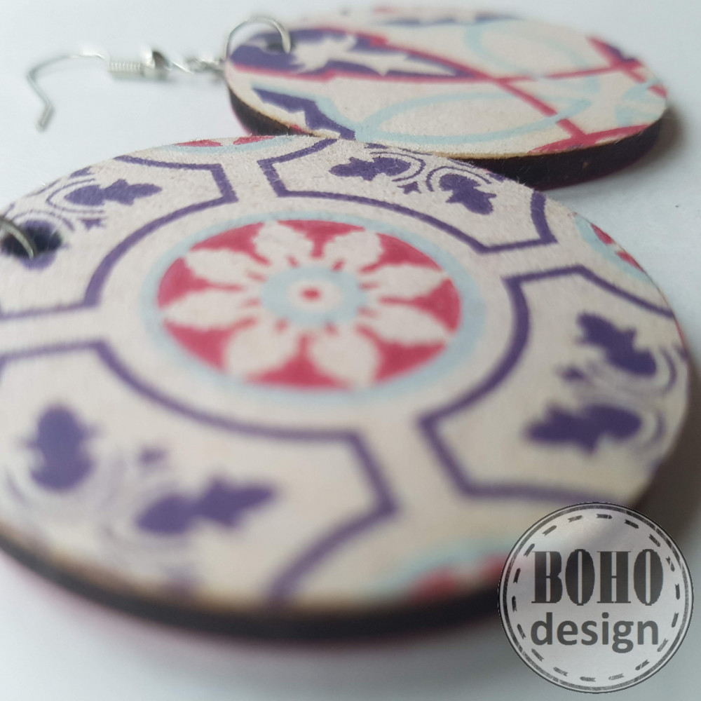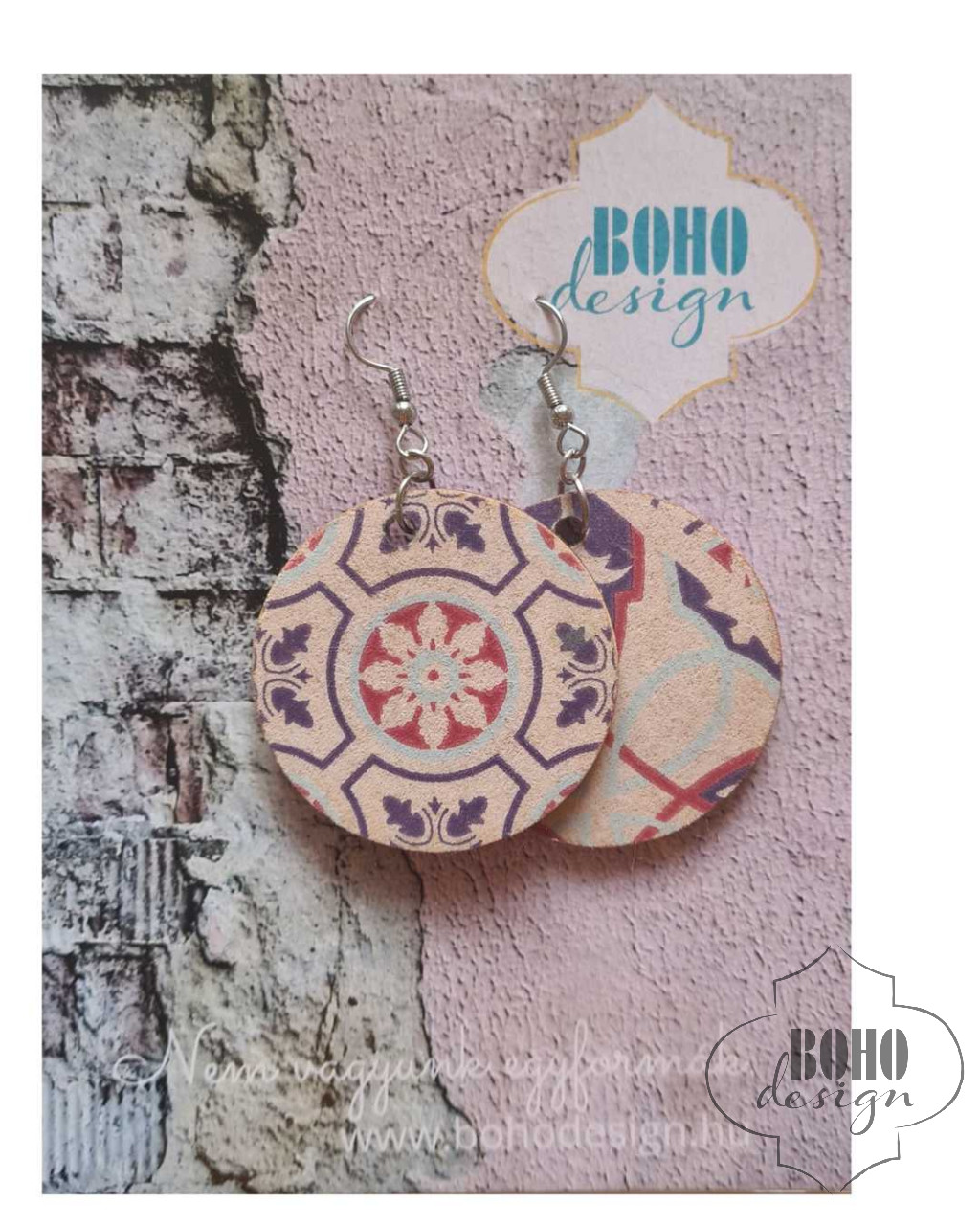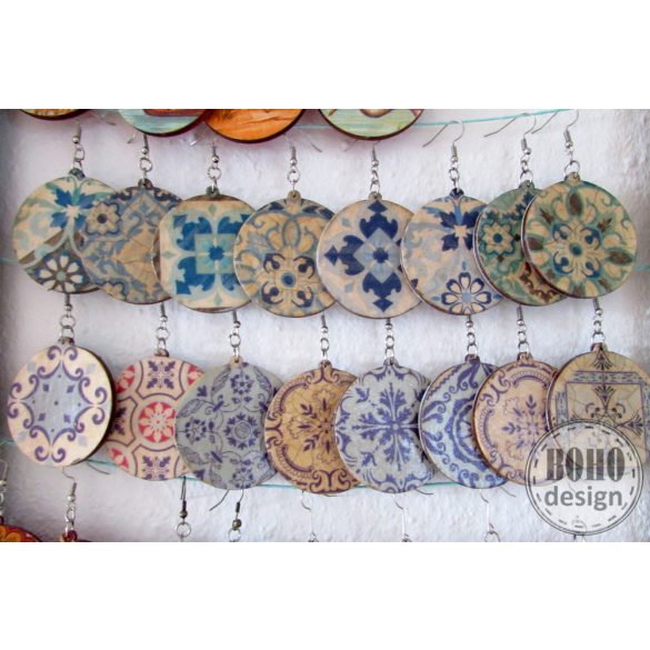 Azulejo mintás BOHOdesign aszimetrikus fülbevaló - idézetes csomagolásban