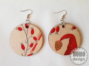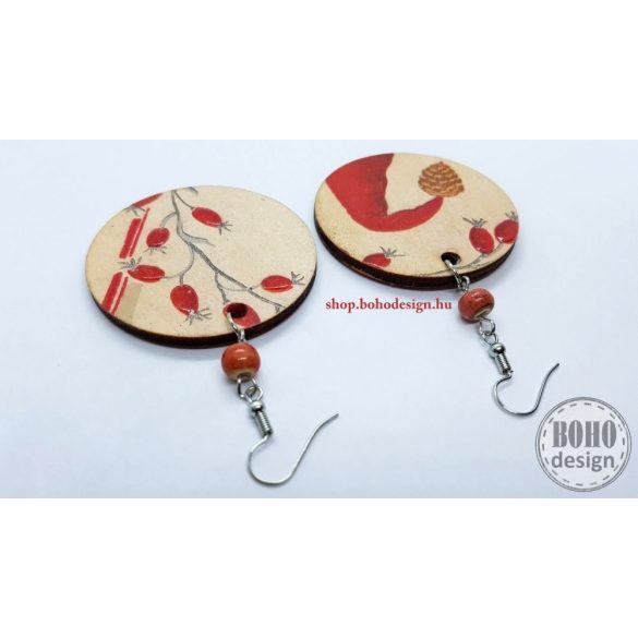 Piros csipkebogyó mintás aszimmetrikus karácsonyi hangulatú fülbevaló, UTOLSÓ DARAB!