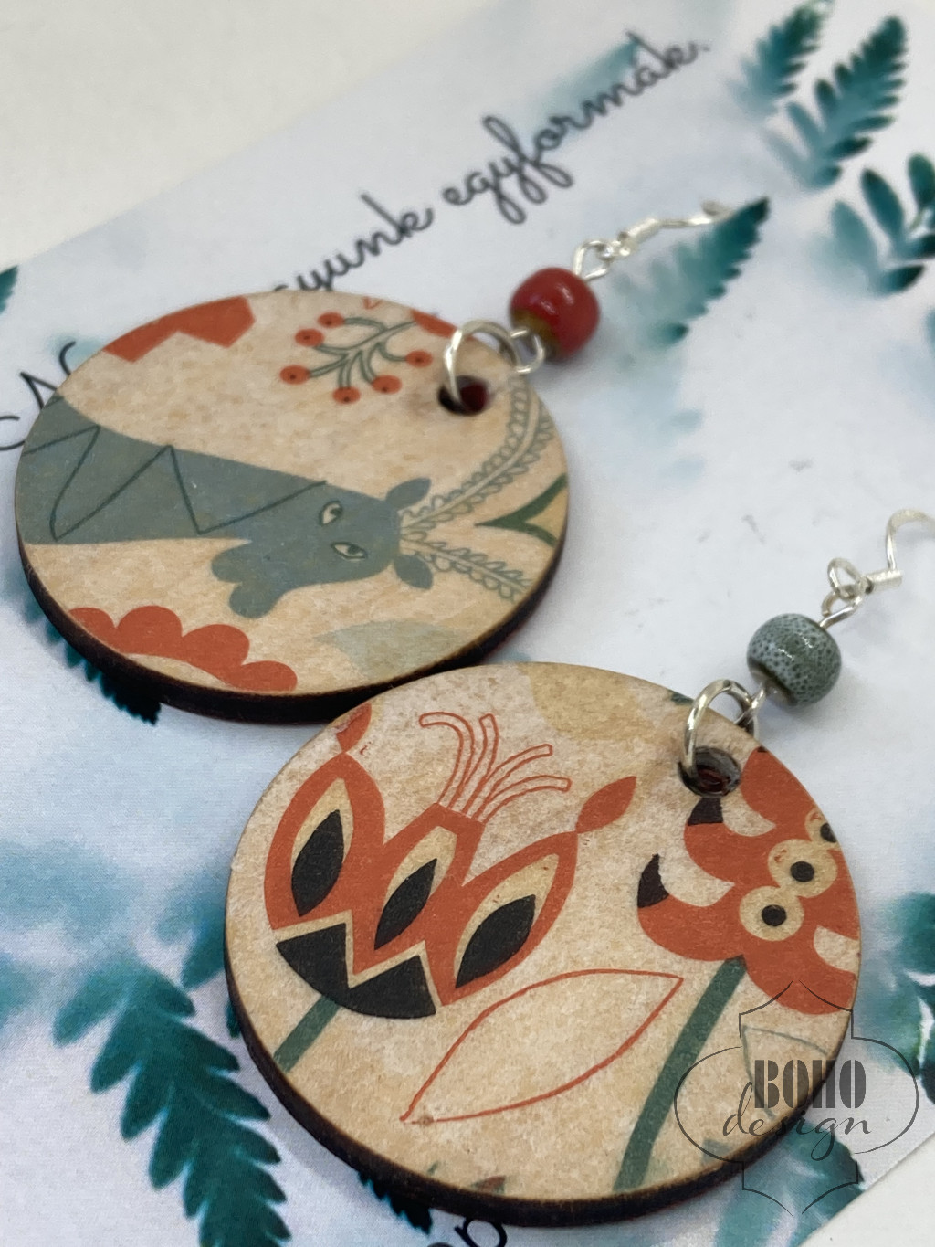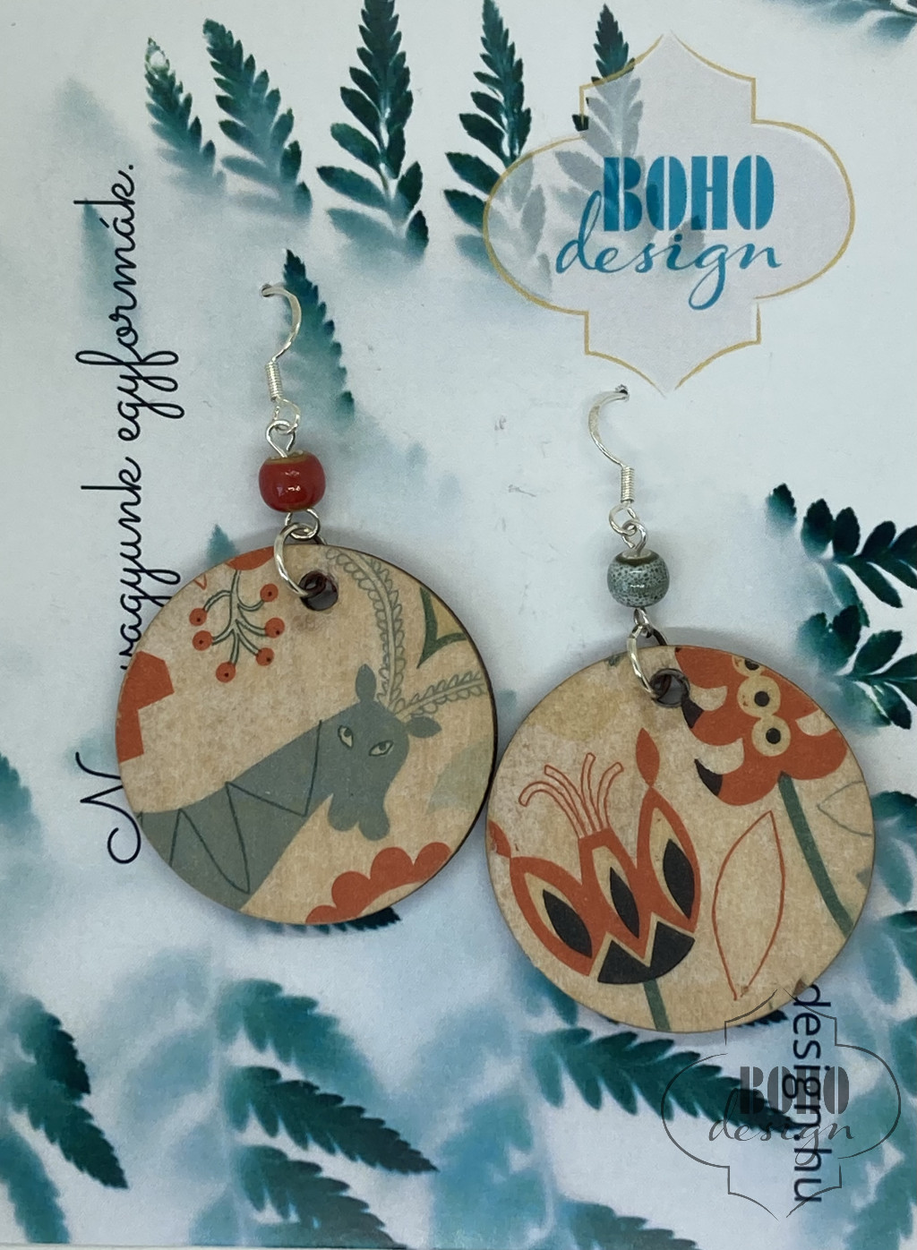 Szarvasos bogyós - BOHOdesign aszimmetrikus fülbevaló - idézetes csomagolásban