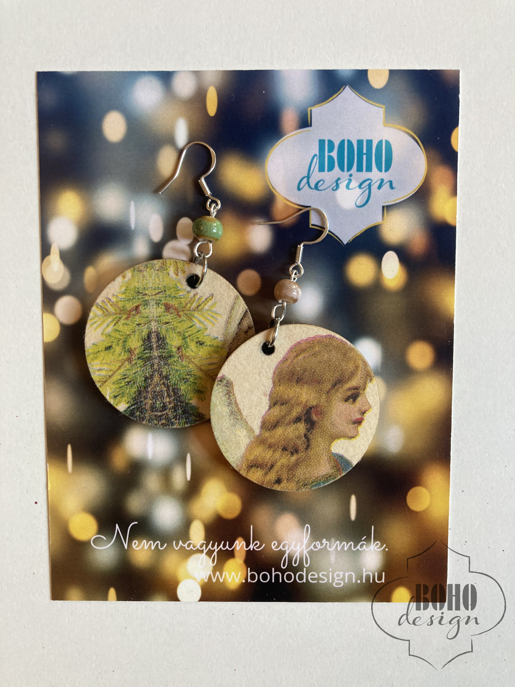 Angyalos - karácsonyi BOHOdesign aszimmetrikus fülbevaló - idézetes csomagolásban