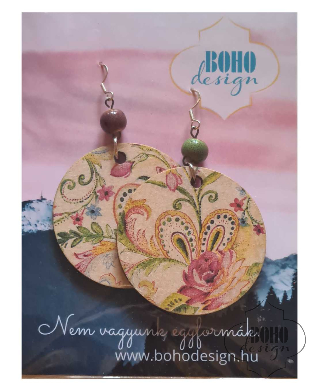 Romantikus virágminta - BOHOdesign aszimmetrikus fülbevaló - idézetes csomagolásban
