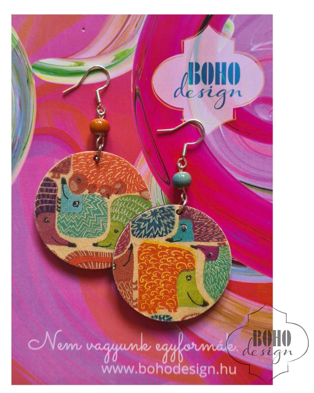Színes sünik - BOHOdesign aszimmetrikus fülbevaló - idézetes csomagolásban